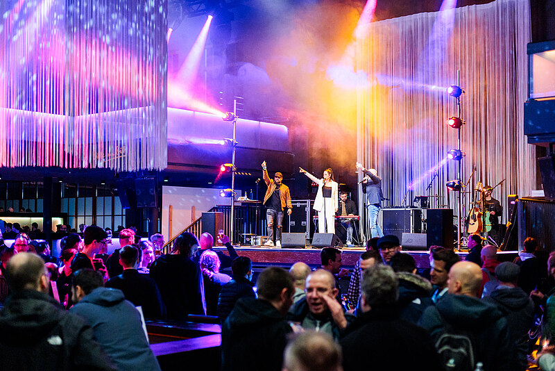 Am Abend des ersten Konferenztages begeisterte Jean-Pierre Derinbay & Friends nach einem leckeren Abendessen die Menge im Eifel Stadl mit Live-Musik. Zusammen mit Vanessa Iraci und Juan Daniél heizte er dem Publikum ordentlich ein und brachte jeden bei Rock- und Popmusik zum Tanzen. Danach ging die Party mit Drinks bis spät in die Nacht mit DJ-Musik weiter, bis alle zufrieden im Bett tief und fest schlummerten und sich auf den zweiten Konferenztag freuten.
